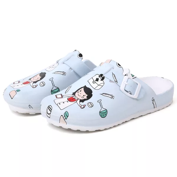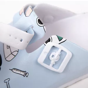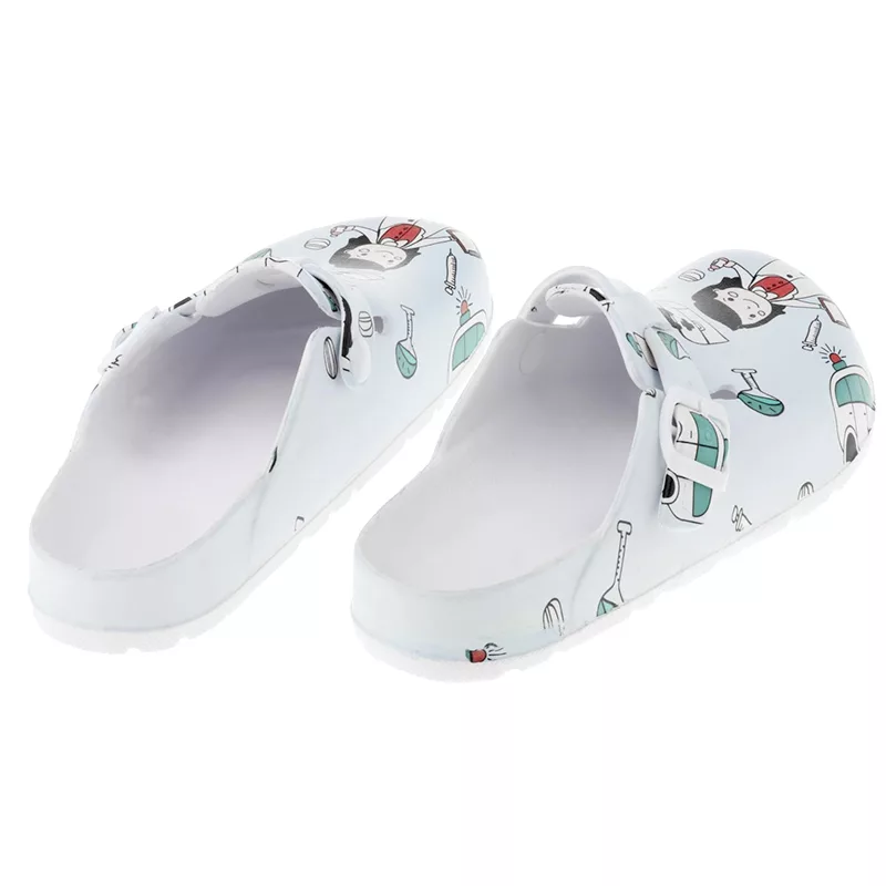 Särskilda EVA-yttersulor ökar friktionen på alla underlag. Rörelser känns stabila och säkra även i blöta kök eller upptagna avdelningar.