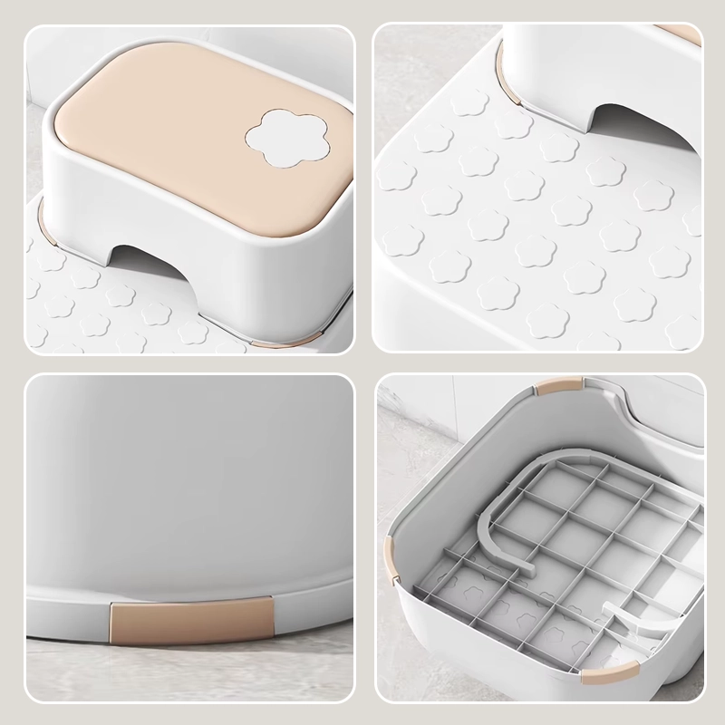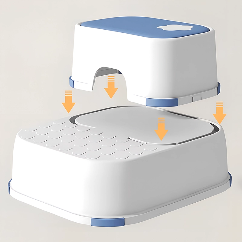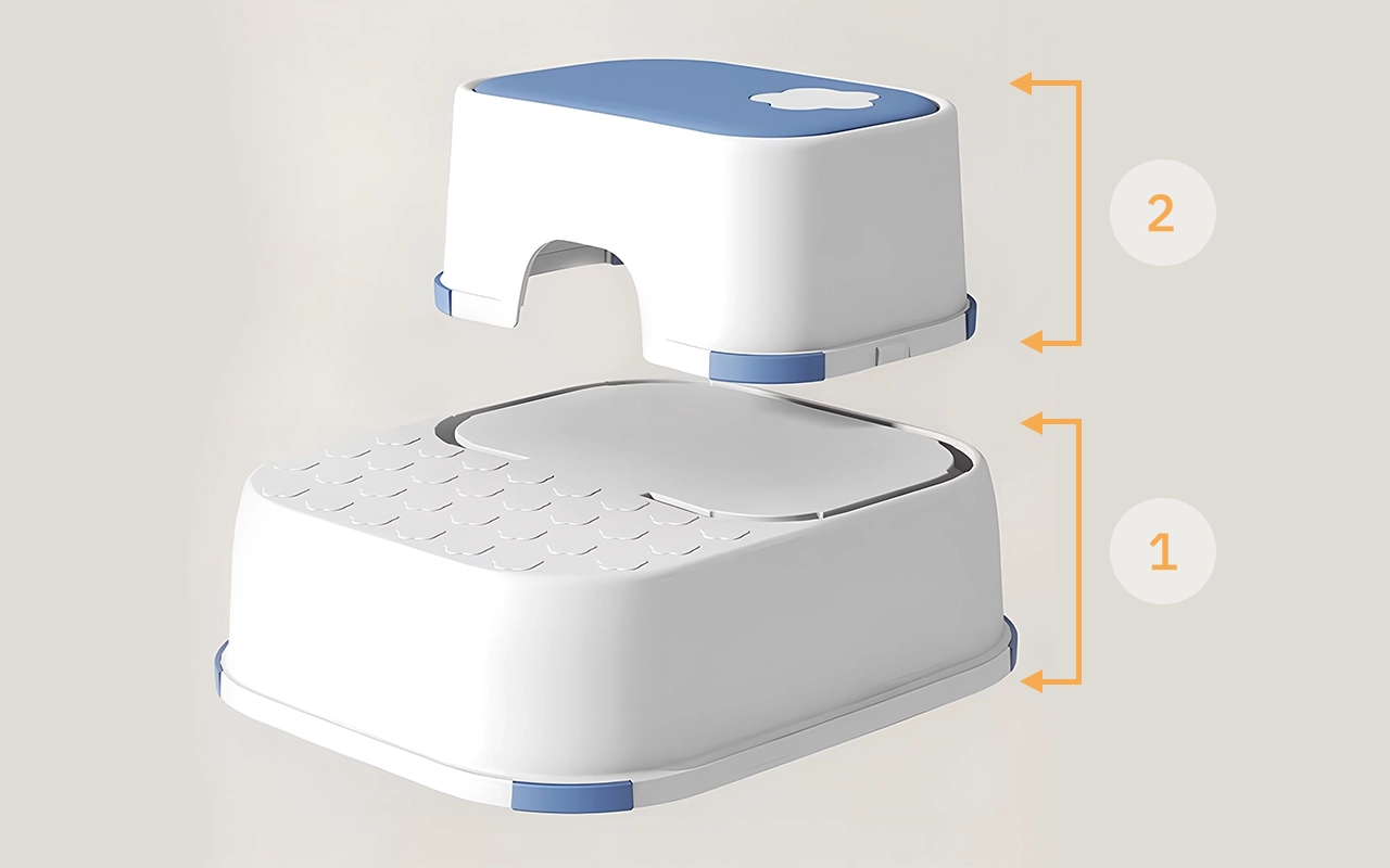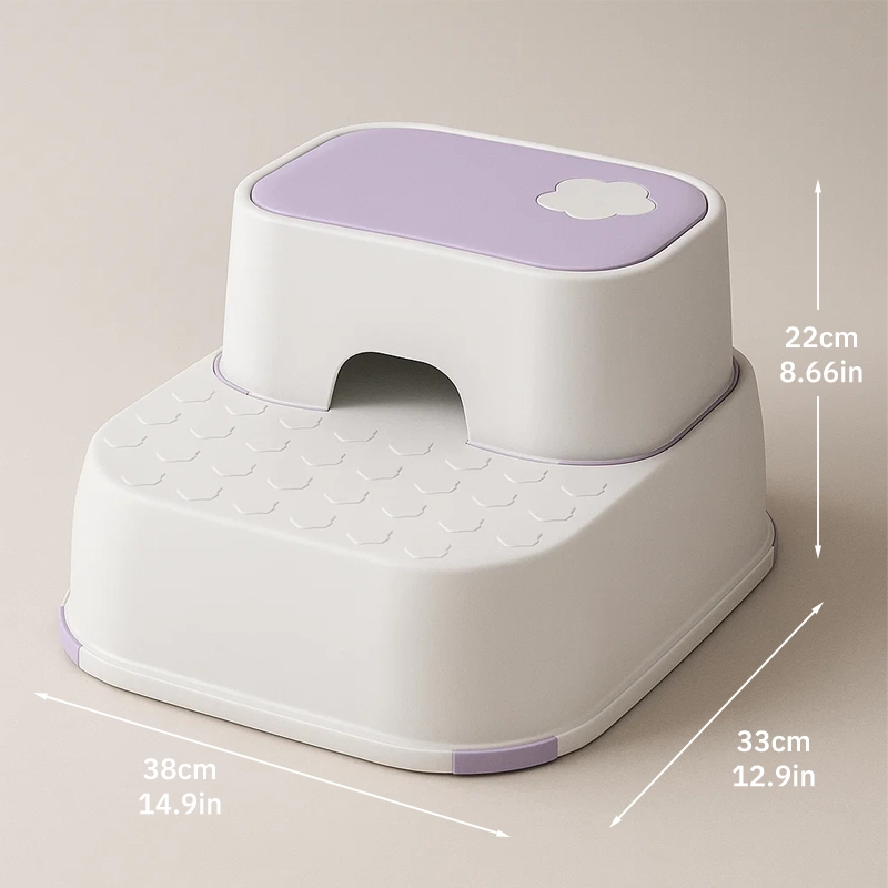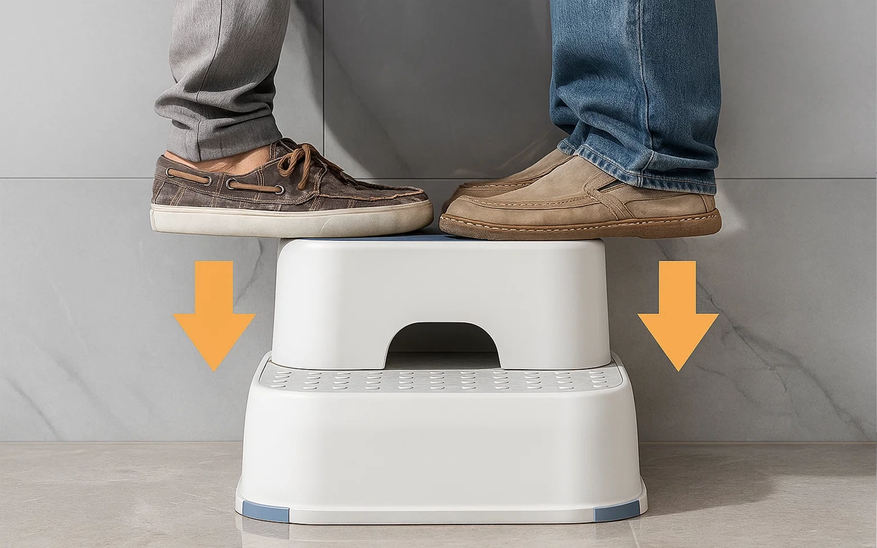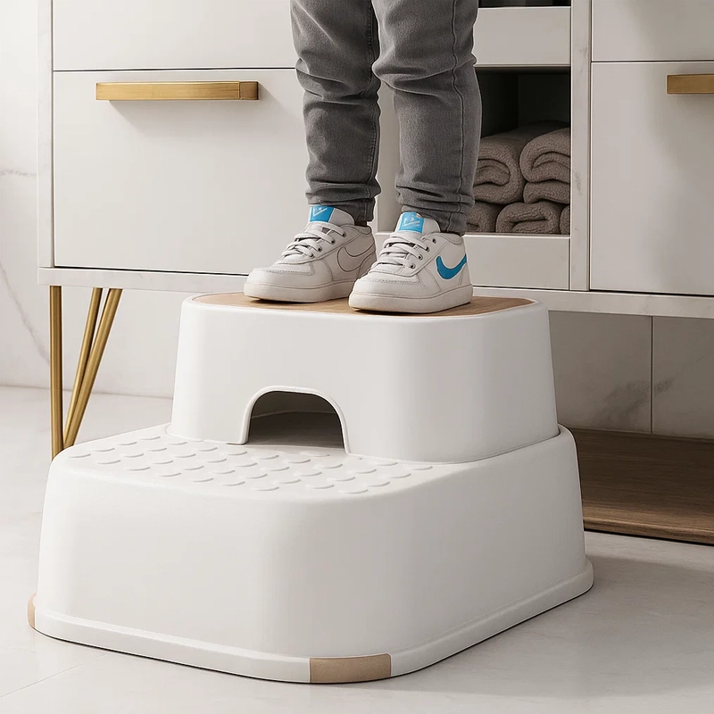 Halkskyddsunderlägg håller pallen stadigt på plats på kaklet. Ingen mer oro för olyckor eller halkningar under stressiga morgnar.