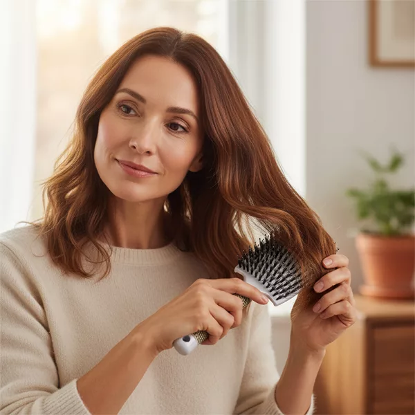 Jag använder denna utredningsborste dagligen och mitt hår har blivit så mycket slätare. De runda topparna känns lugnande, nästan som en huvudmassage på salong.