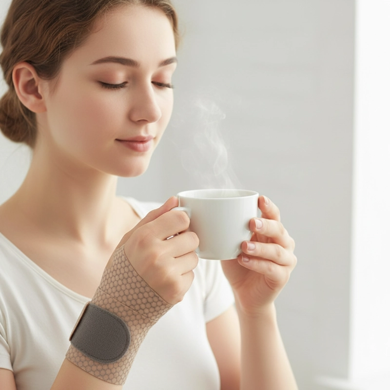 Att bära detta handledsband medan jag skriver hela dagen hjälpte verkligen. Jag känner mig inte öm längre och det är bekvämt även efter flera timmar.