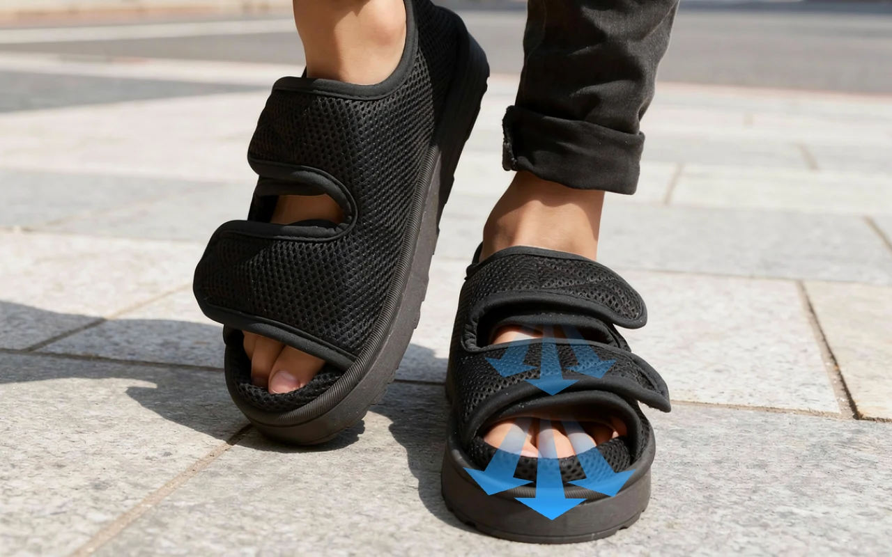 Den andningsbara framdelen minskar värme och skav under användning. Den luftiga utformningen hjälper till att behålla komforten under långa perioder inomhus eller utomhus.