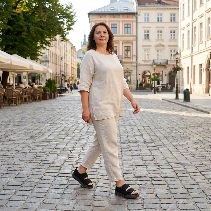Jag använder dessa dagligen ute på gården och inomhus. Den stadiga sulan stöder mina fotvalv, och den öppna tån håller fötterna svala även i varmt väder.