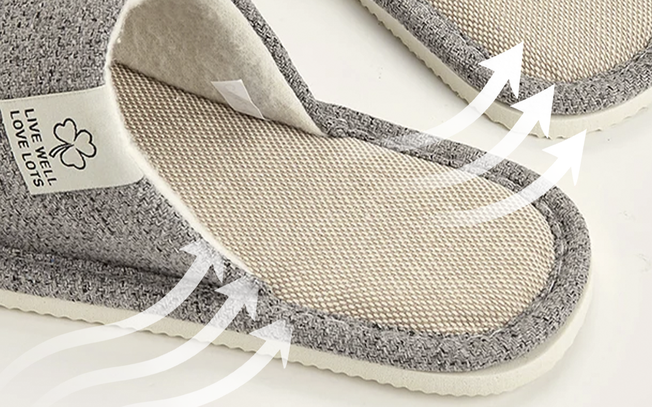 Blandningen av bomull och linne släpper igenom luft och förhindrar svettiga fotsulor. Njut av mjukt tyg som håller huden avslappnad hela dagen.