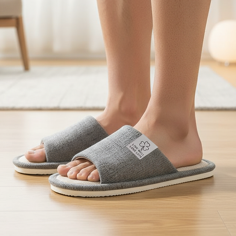 Dessa tofflor är perfekta för morgnar och kvällar. Jag gillar hur mjuka de är inuti och det svala materialet gör mina fötter glada.