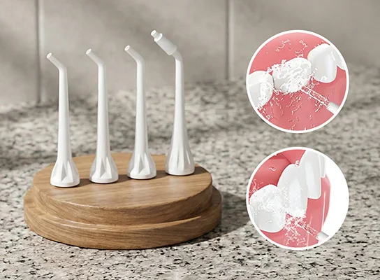 Vår irrigator innehåller tre munstycken för regelbunden rengöring och en tungskrapa.