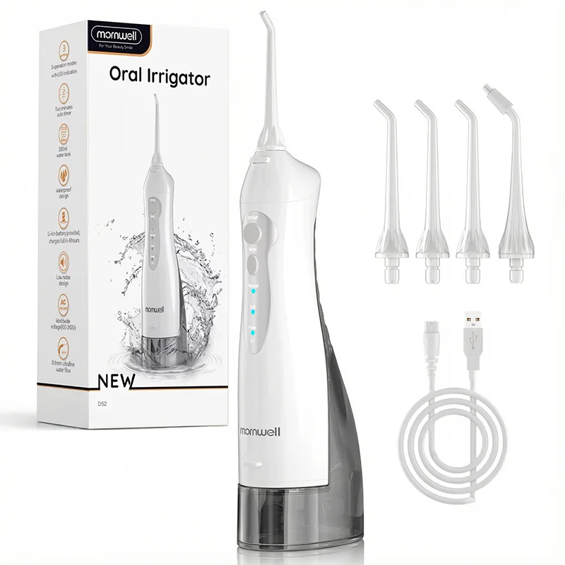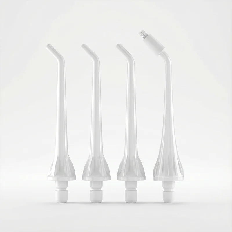 Vår irrigator innehåller tre munstycken för regelbunden rengöring och en tungskrapa.