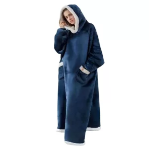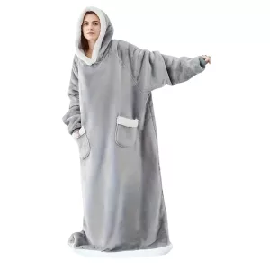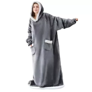 Håll dig varm inomhus i alla väder med Ortorex bärbara filt med huva. Den har en överdimensionerad design och en stor luva för att skydda dig mot kylan. Den är ett perfekt komplement till avkopplingsstunder hemma!