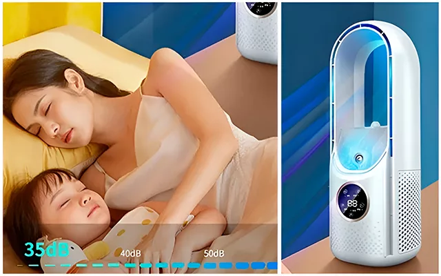 Frisk luft flödar tyst omkring dig varje dag. Njut av lugna nätter och bekväma dagar med den elektriska fläkten Orotrex. Fin dimma håller din hud mjuk och lämnar den aldrig torr.