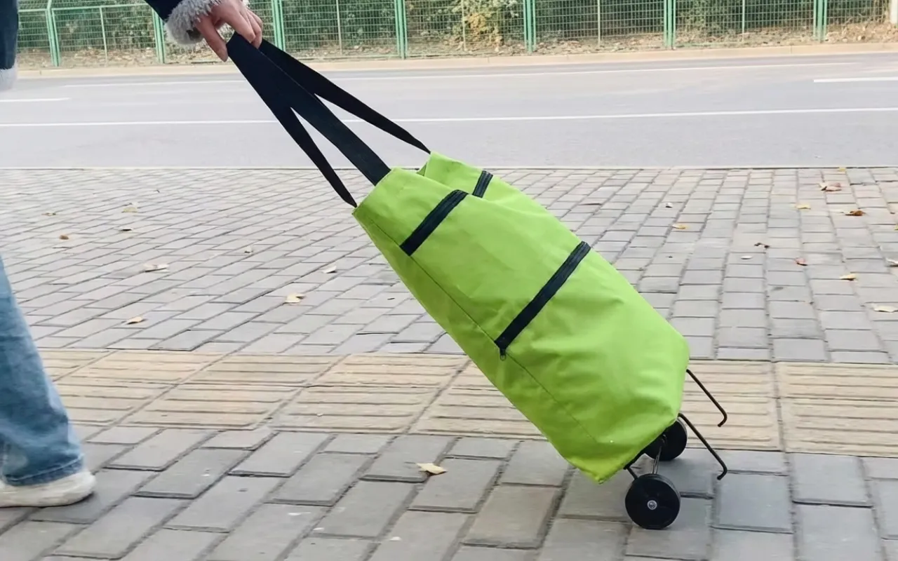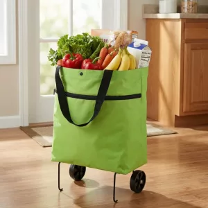 Jag kör den här vagnen till stormarknaden två gånger i veckan. Den bär mjölk, bröd, grönsaker och städprodukter utan problem. Den stadiga väskan hindrar allt från att välta.