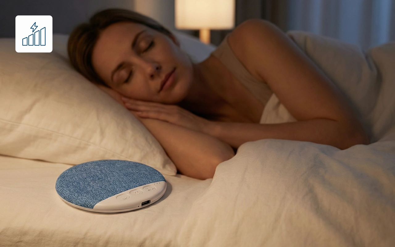 Ortorex ger lugna nätter till ditt hektiska liv. Slappna av snabbt efter långa dagar och skydda dina drömmar från buller. Njut av lugnande naturljud för enkel vila. Den slimmade formen passar perfekt på alla nattduksbord. Upplev komfort, avkoppling och djupare sömn varje natt.