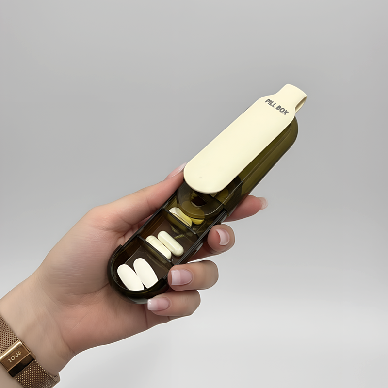Den här lilla lådan gör mina morgnar så mycket enklare. Inga fler problem med fastnade tabletter, bara ett snabbt tryck och jag är redo att gå. Superpraktisk och håller allt ordnat.