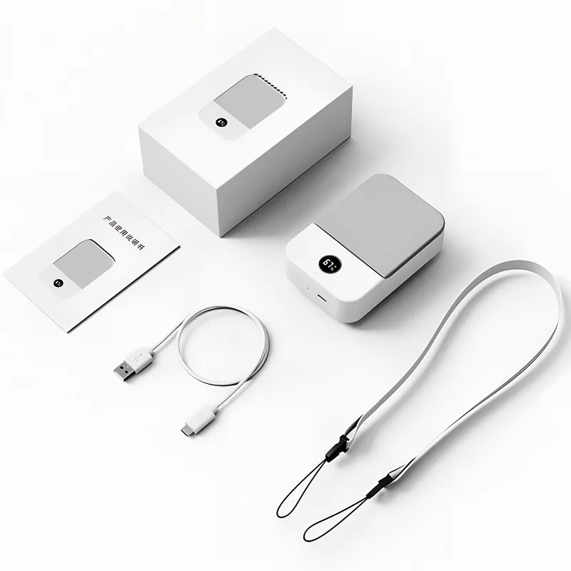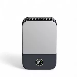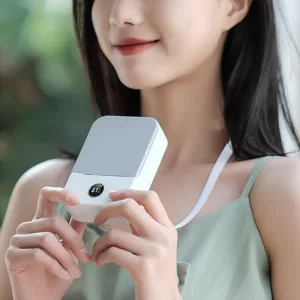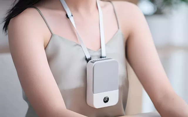 Bär den runt halsen för fullständig bekvämlighet. Den inbyggda midjeklämman gör att du kan använda den flexibelt både inomhus och utomhus.
