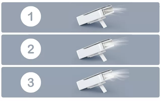 Den avancerade turbinmotorn ger en kraftig bris på några sekunder. Tre inställningar låter dig justera luftflödet för alla situationer.