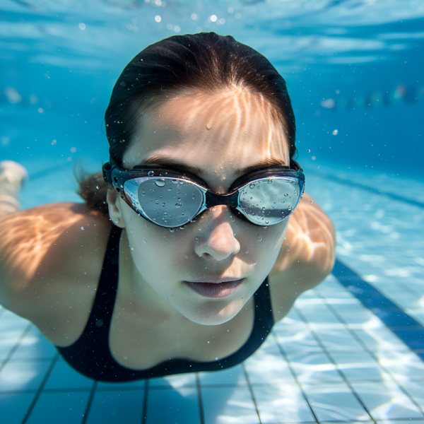 Simma utan att immiga linser blockerar din sikt från början till slut. Specialbeläggning håller allt helt klart för längre tid i poolen.