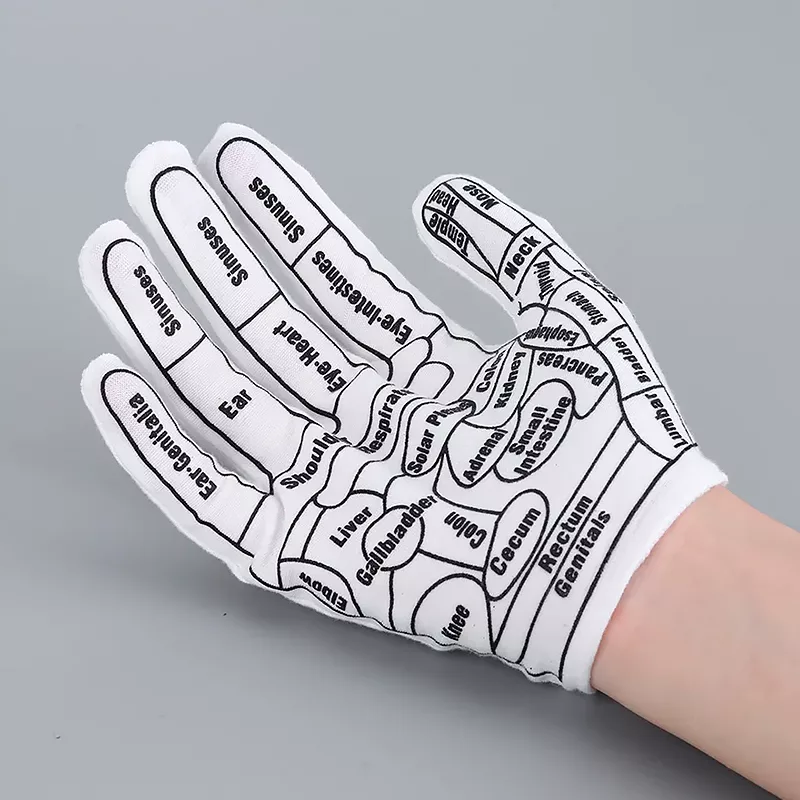Att ta på sig dessa handskar efter jobbet hjälper mina fingrar att slappna av så mycket. Jag gillar verkligen zonerna för akupressur, särskilt de för ömma tummar.