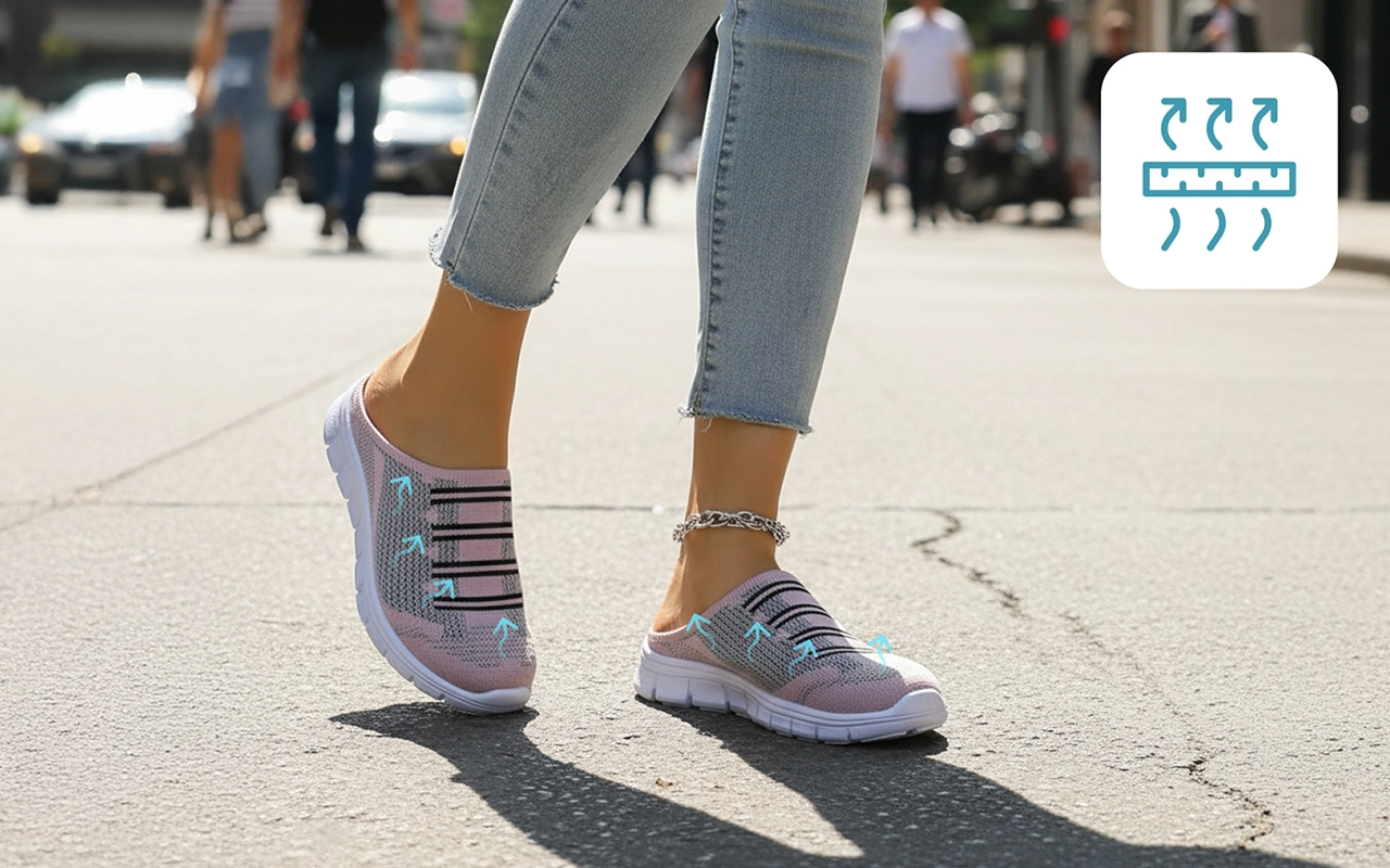 Mjuk dämpning ger stöd åt trötta fötter och gör långa promenader enkla. Den flexibla designen anpassar sig efter varje steg för långvarig avslappning.