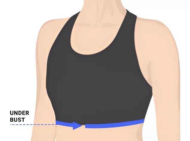 - 2. För att hitta måttet under bysten, vira måttbandet runt bröstkorgen, direkt och jämnt under bysten.