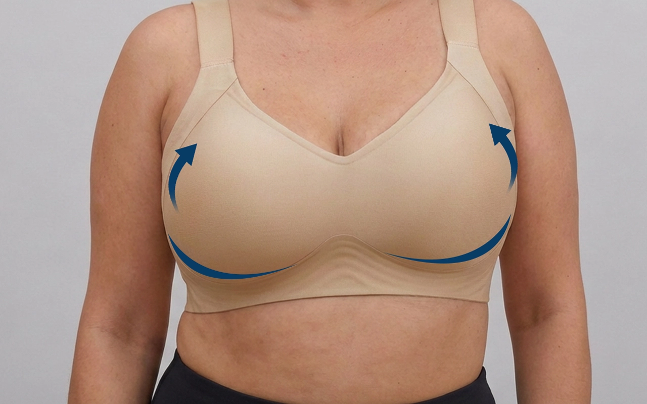 - 1. Innan du börjar, bär en ovadderad bh som stöttar din naturliga form – inte en bralette eller vadderad bh.