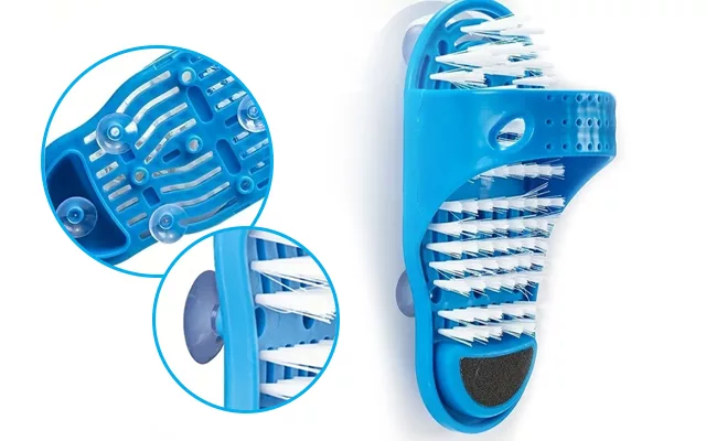 Få en fräsch känsla efter varje dusch. Ortorex Shower Foot Scrubber tar bort hård hud utan att du behöver böja dig eller halka. Borstar masserar och rengör varsamt, vilket gör fötterna mjuka och friska. Pålitliga sugkoppar håller sandalen på plats på vilket duschgolv som helst.