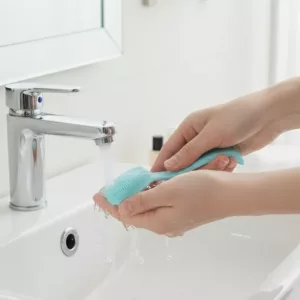Ortorex hudskrubb passar bekvämt även i våta händer, vilket gör den lätt att använda.