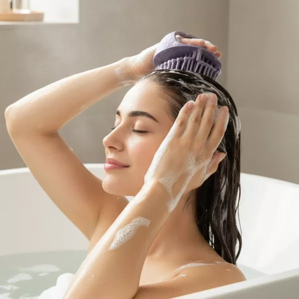 Mjuka borst lättar spänningar utan att repa känsliga områden. Varje tvätt blir lugnande och behaglig för ditt huvud.