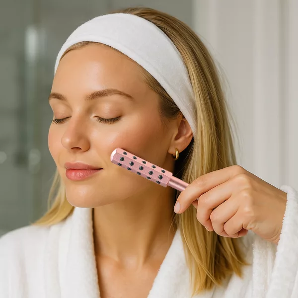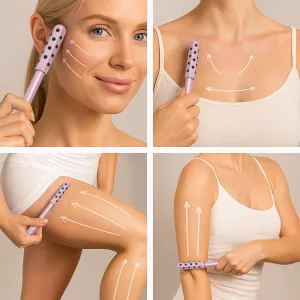 Denna roller hjälper till att öka hudens elasticitet genom att stimulera ansiktsområden. Bibehåll slätare konturer och minska slapphet enkelt.