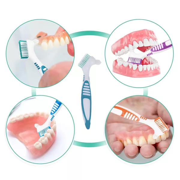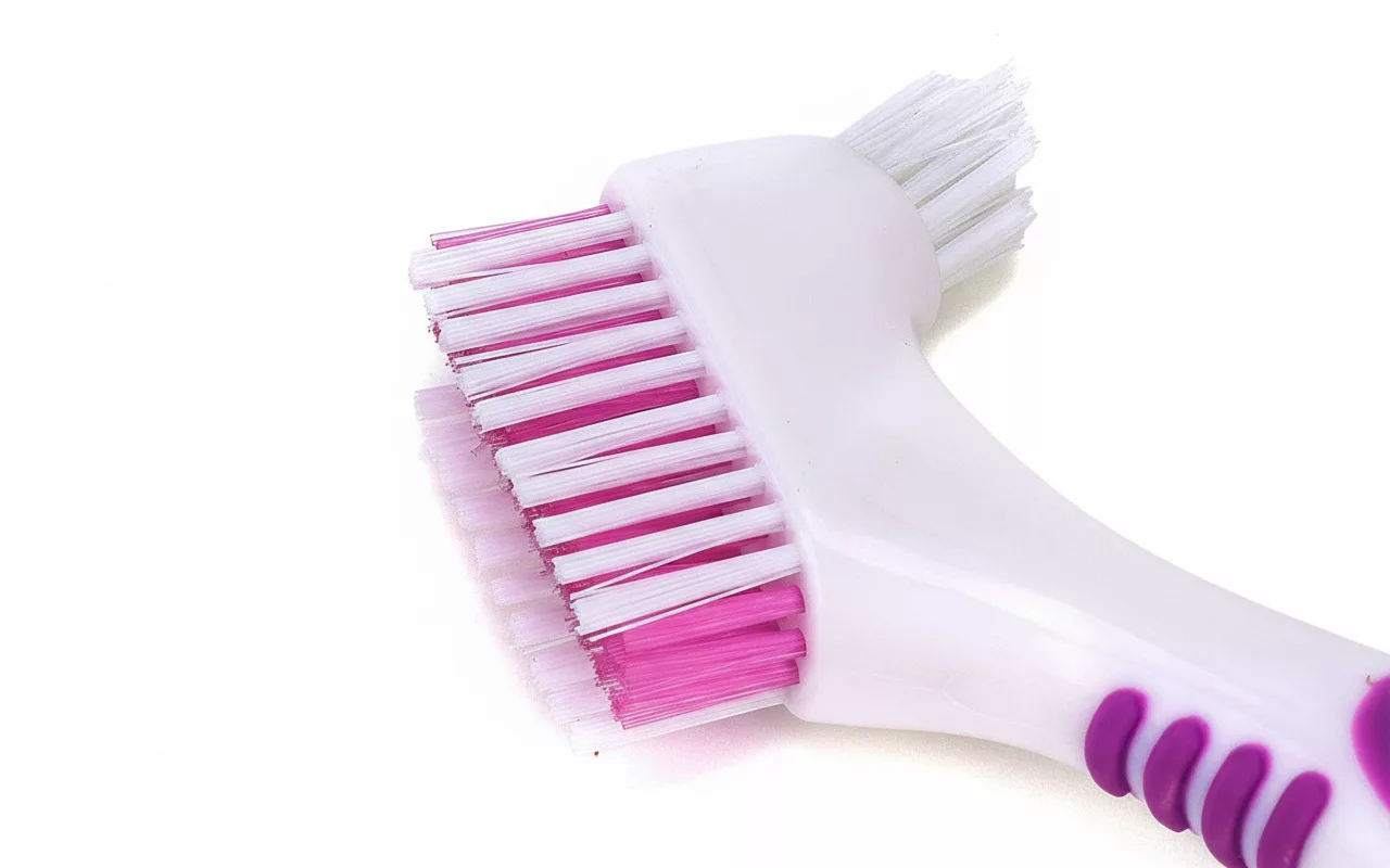 Behöver inte längre oroa mig för att skada mina proteser. Nylonborsten glider lätt och får ut matrester under kanterna varje gång jag använder borsten.
