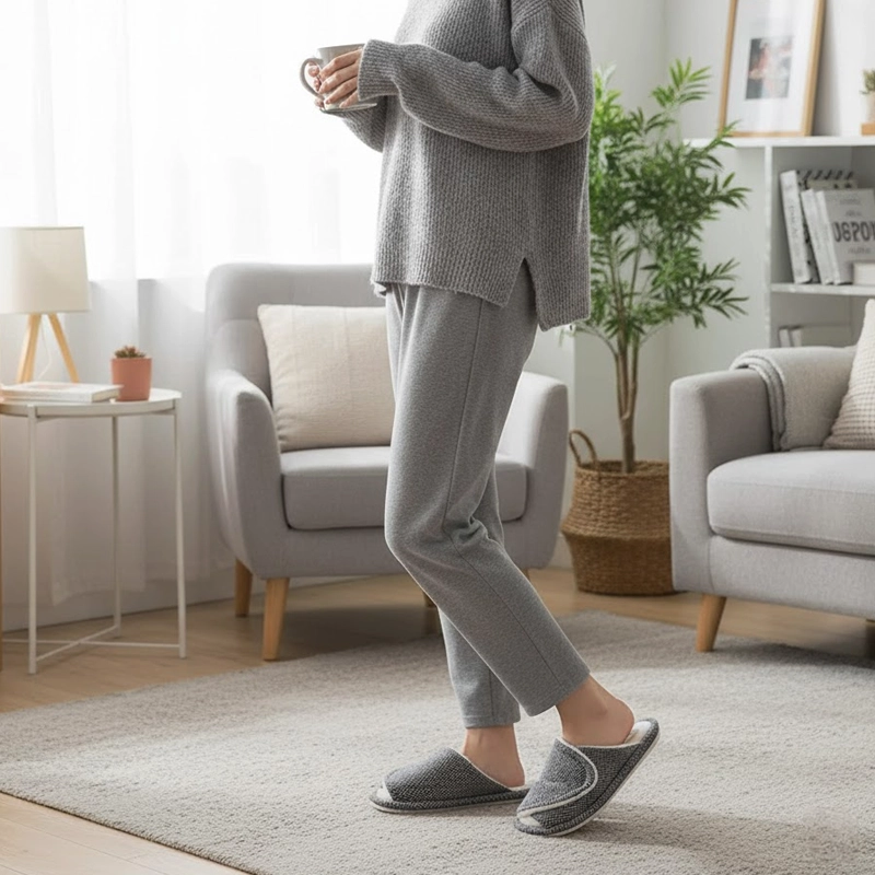 Kliv in i total avslappning varje kväll hemma. Ortorex-tofflor omsluter tårna i mjuk plysch och lugnar trötta fötter snabbt. Gången känns stabil tack vare en stadig sula som greppar alla underlag. Dessa gör kalla golv varma och inbjudande.