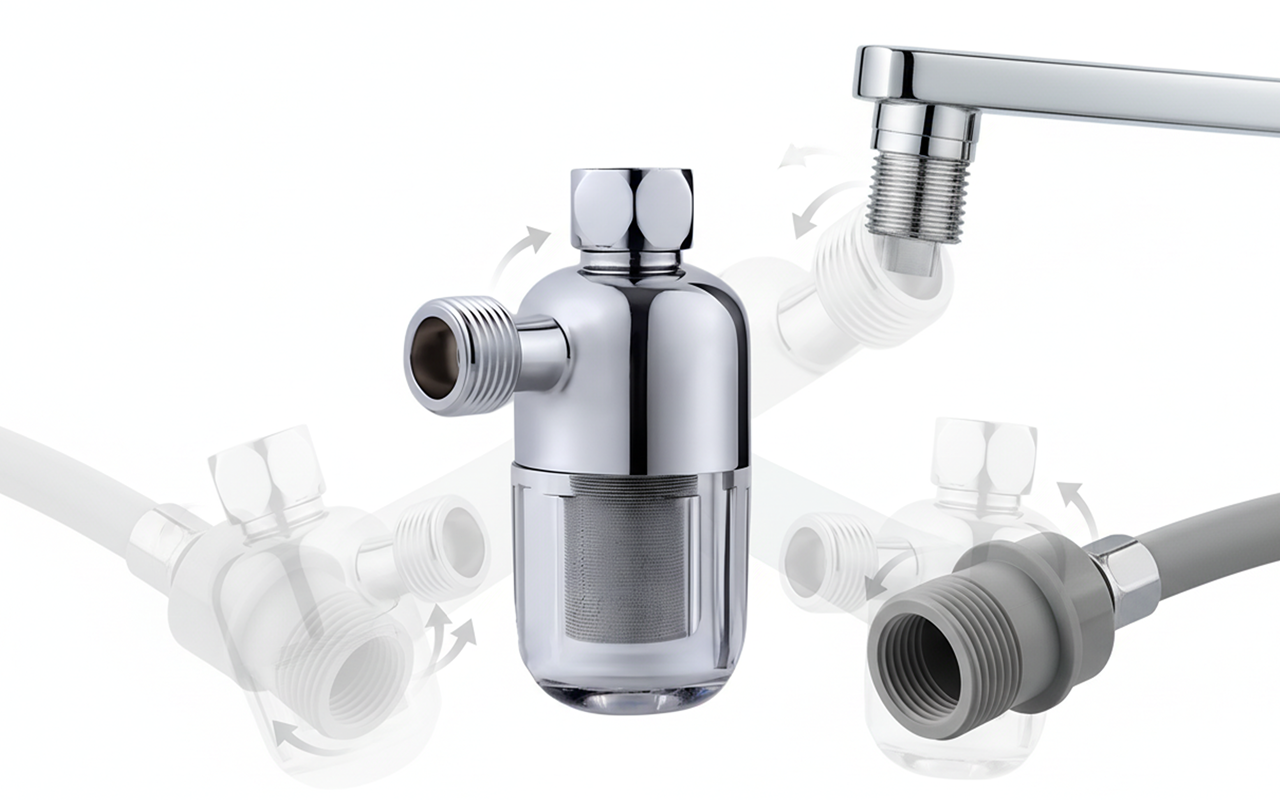 Ortorex-filter passar kranar, duschar och tvättapparater. Ett snabbt vrid kopplar den till nästan vilken anslutning som helst.
