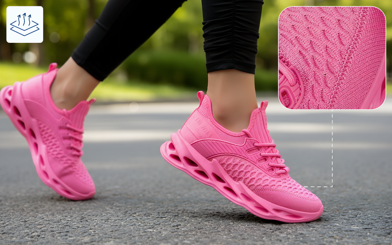 Mesh-överdelen hjälper till att hålla huden torr och fräsch. Säg adjö till svettiga obehag under hektiska dagar.