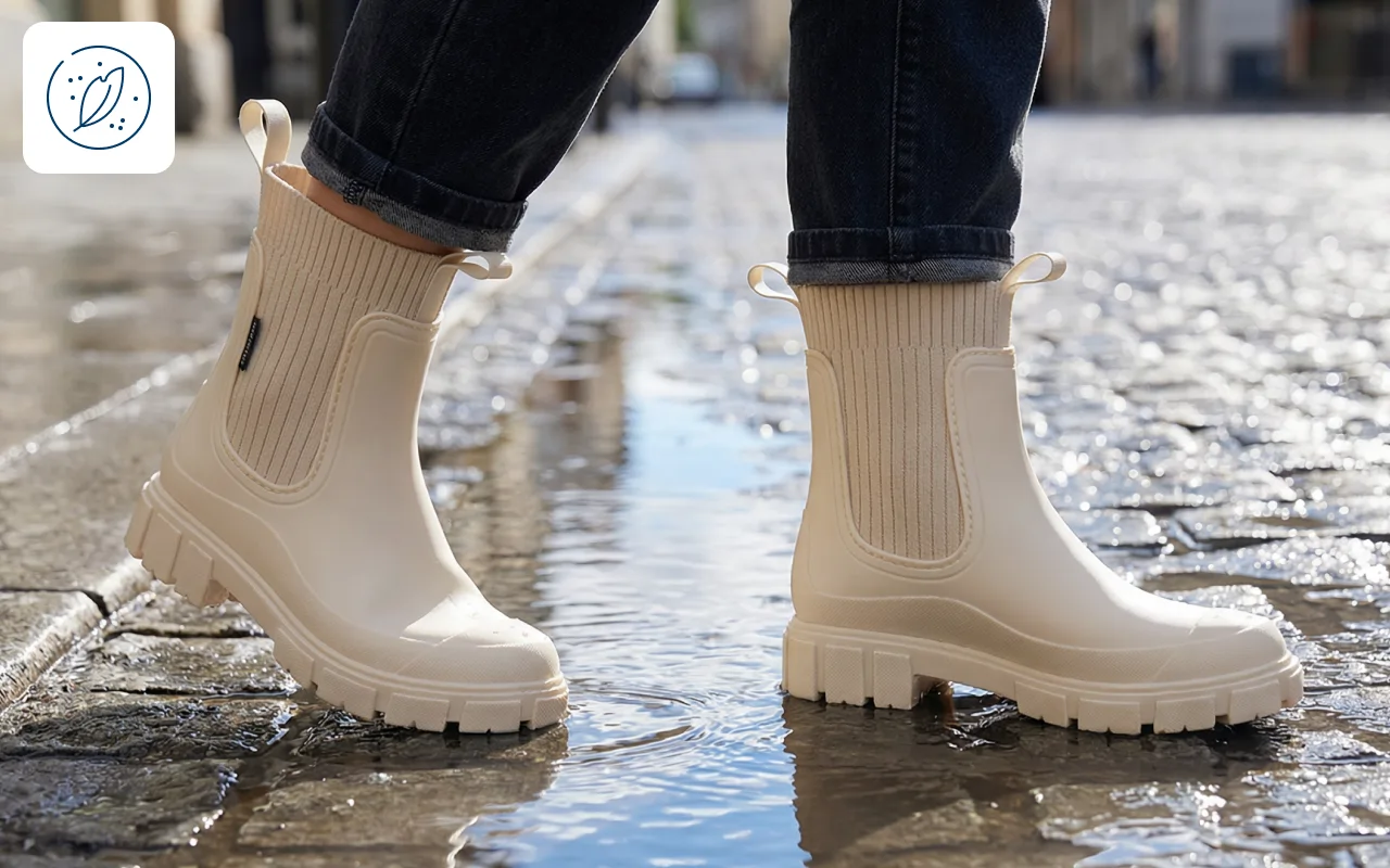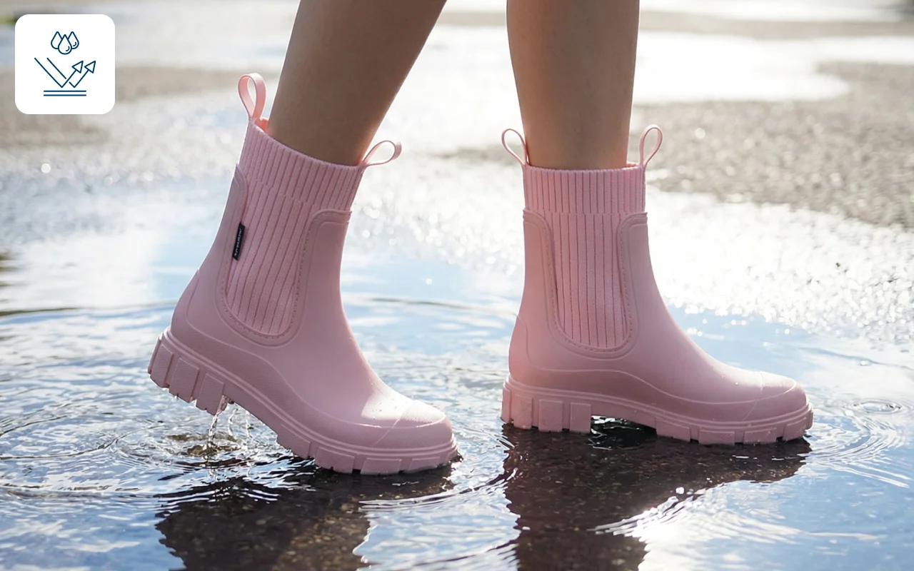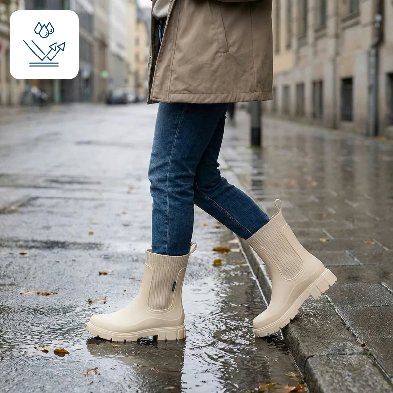 Regnet håller sig ute medan dina fötter förblir varma och fräscha. Gå runt i stan även när vattenpölar täcker gatan.