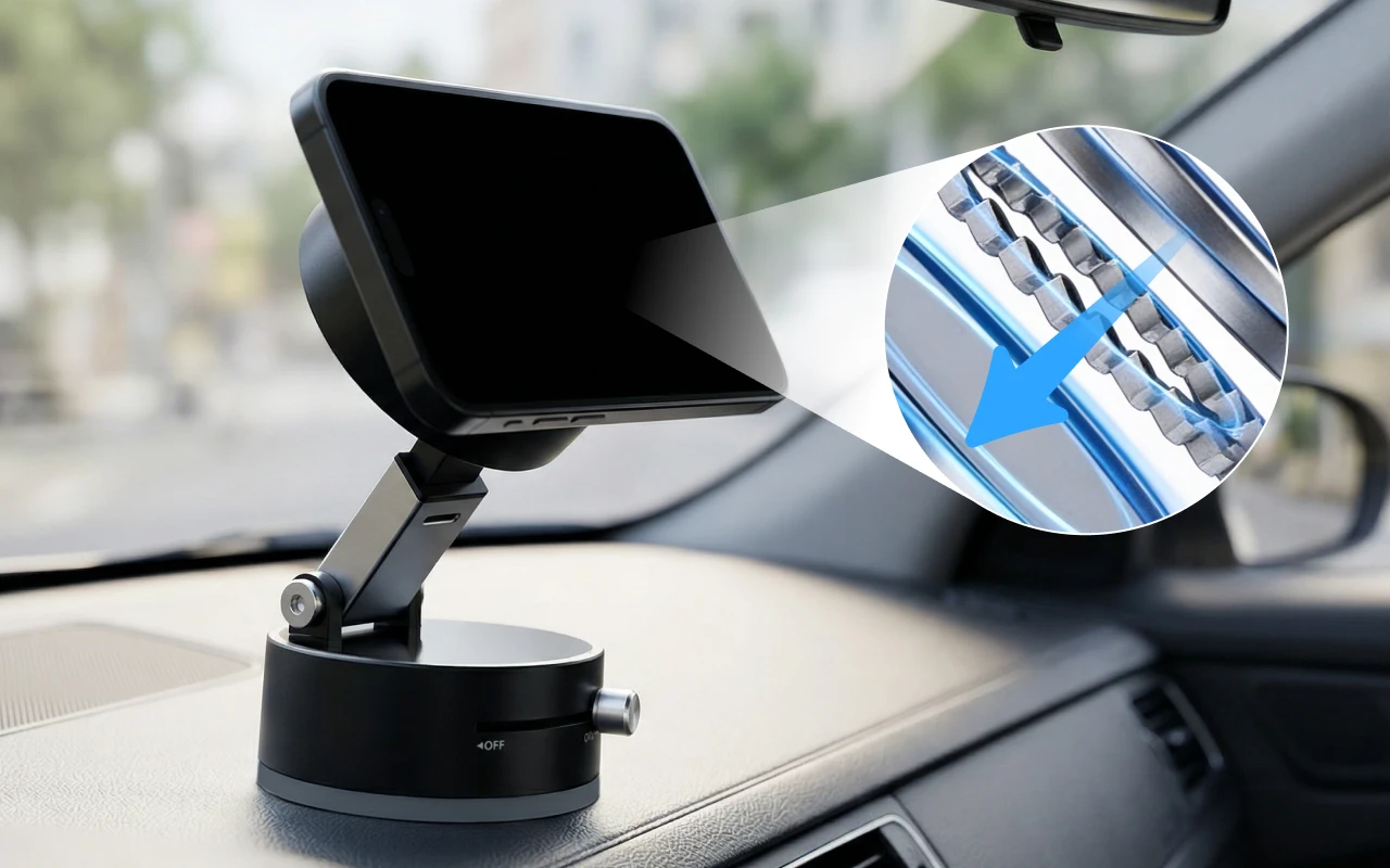 Kraftfulla magneter håller din telefon stadigt på plats, alltid. Ingen skakning eller glidning, även när ytorna blir ojämna.