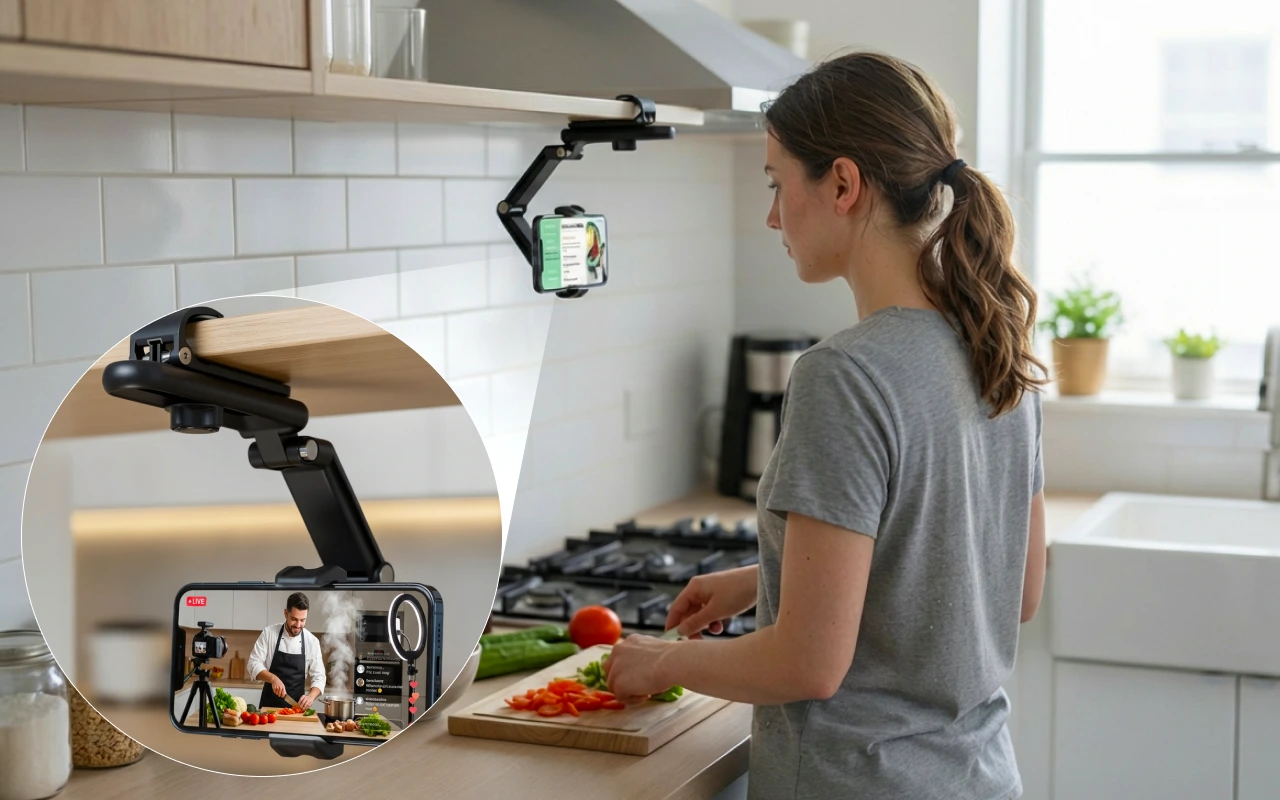 Fäst hållaren var du vill, från bilen till köket. Njut av stabilt stöd för samtal, tittande eller studier var du än behöver.