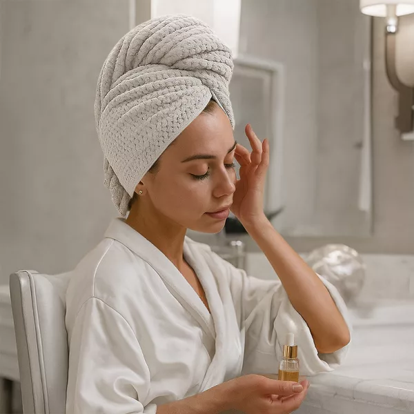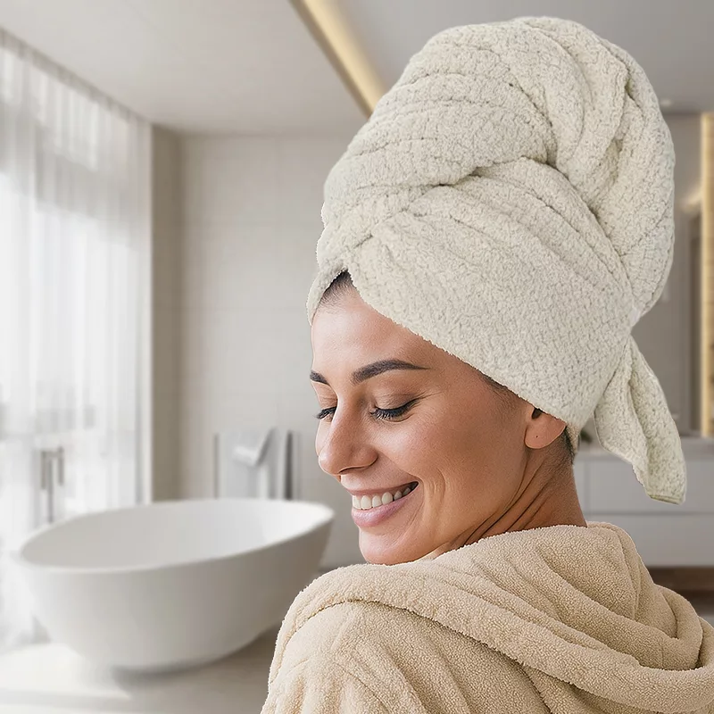 Mikrofibern är fantastisk—mjuk mot mitt huvud och mitt hår torkar supersnabbt! Inga mer blöta fläckar eller tunga handdukar som ramlar av. Vill aldrig byta tillbaka.