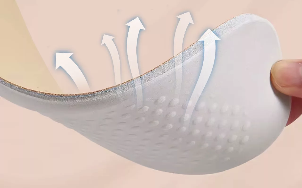 Flera vadderade lager skapar en mjuk barriär mellan din fot och marken. De minskar trycket på hälar och tår, och förhindrar trötthet efter timmar av stående eller promenad.