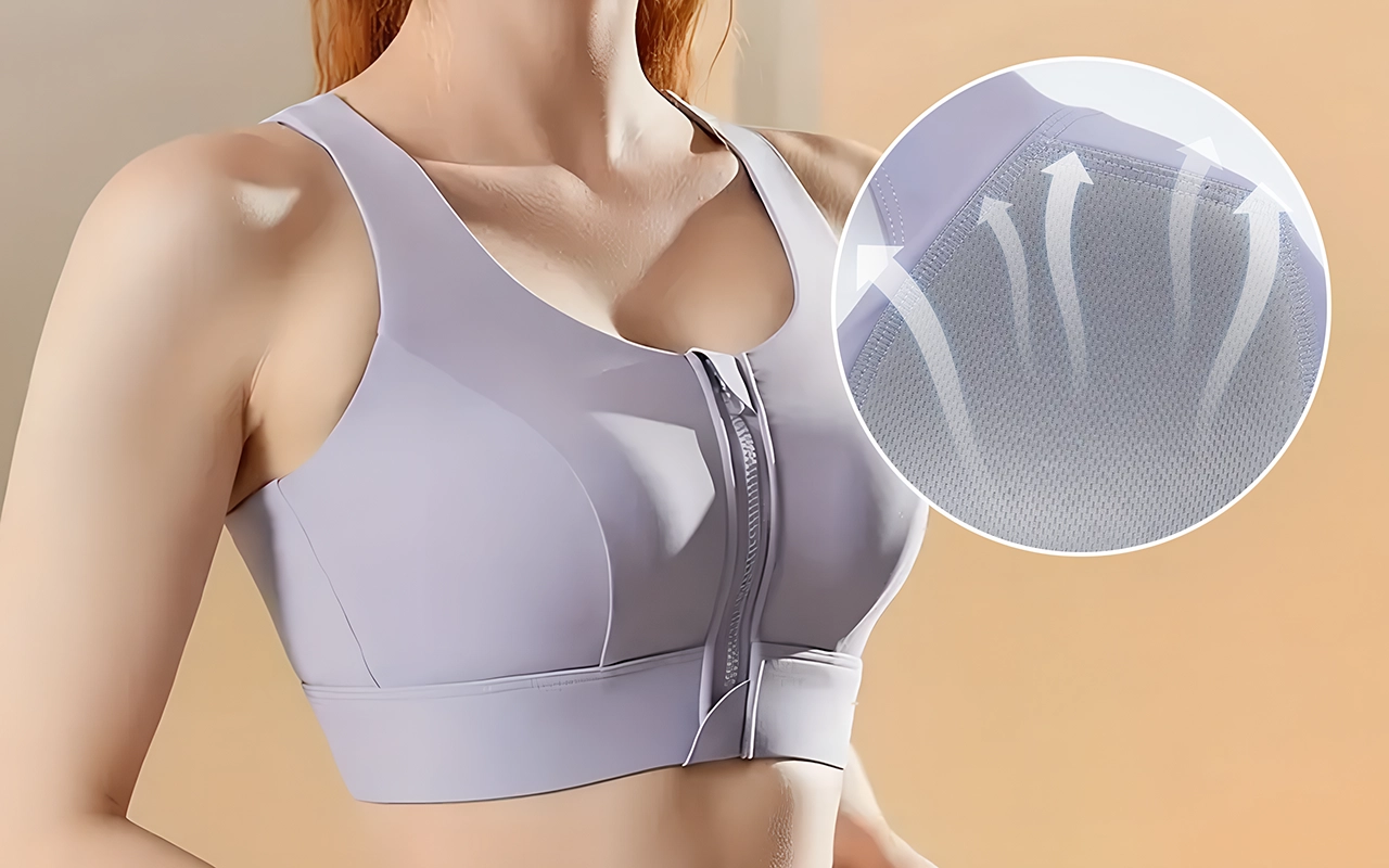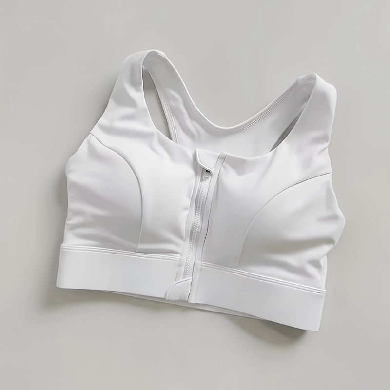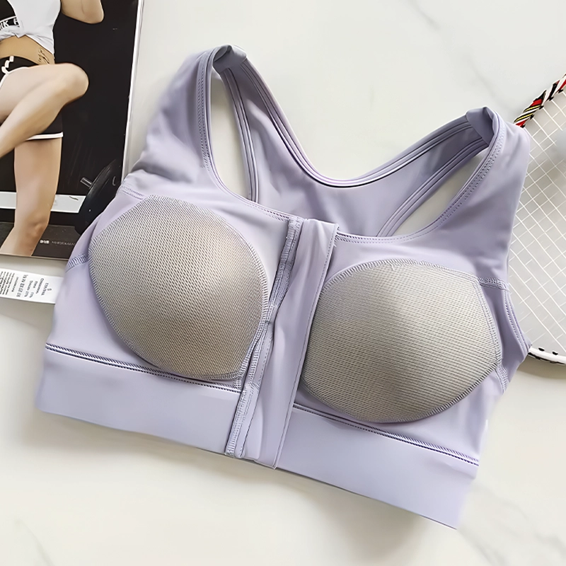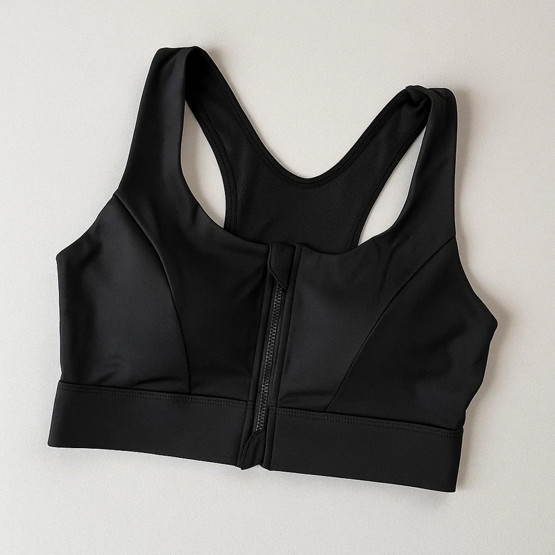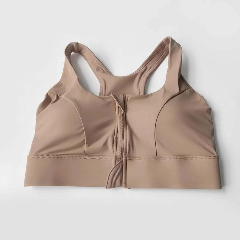Dragkedjan framtill gör det superenkelt att byta om före och efter yoga. Stödet håller allt på plats även när jag hoppar under konditionsträningen.