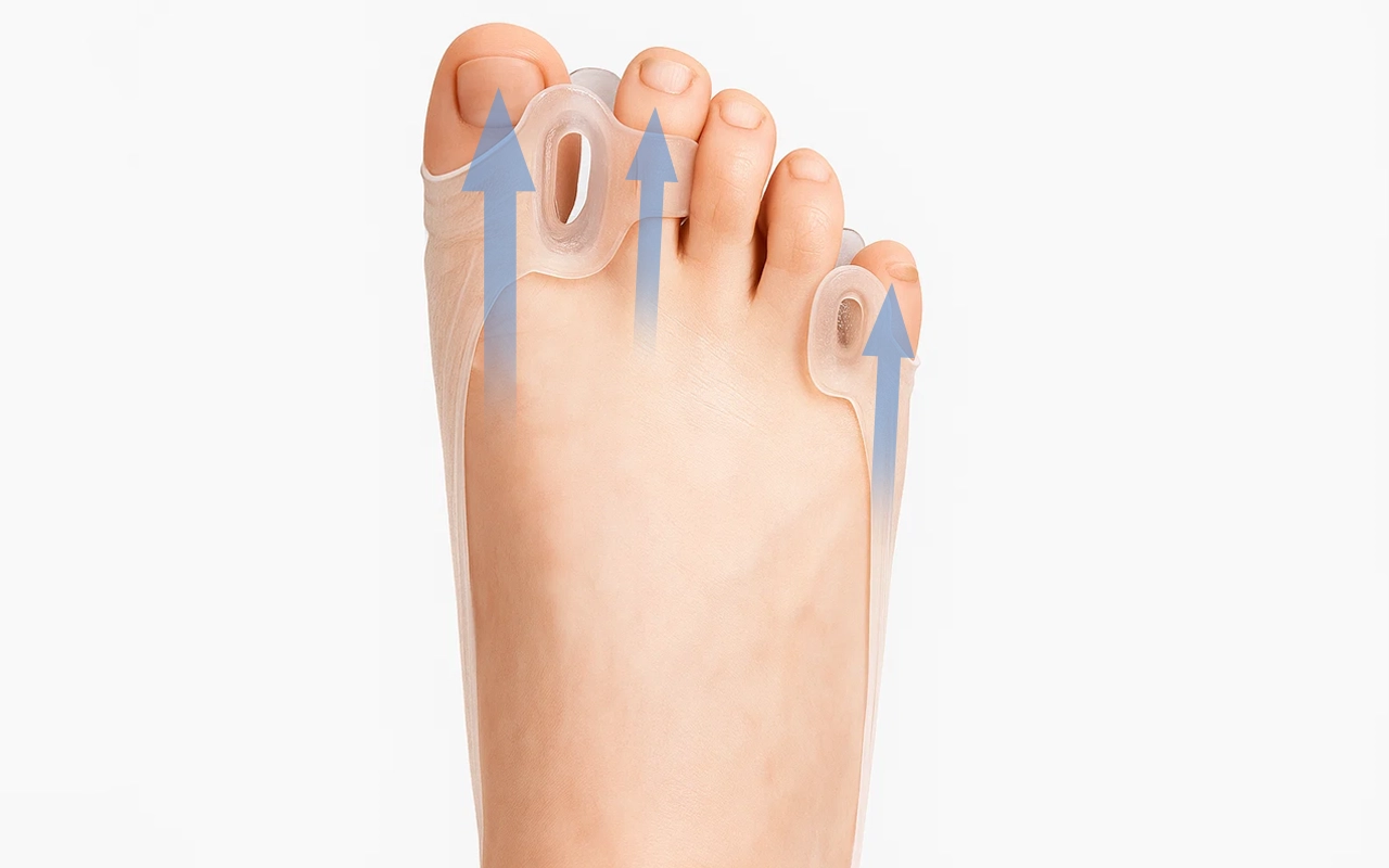 Hjälper till att räta ut tårna utan obehag eller stress. Håller varje led stabil så att rörelserna känns smidiga.