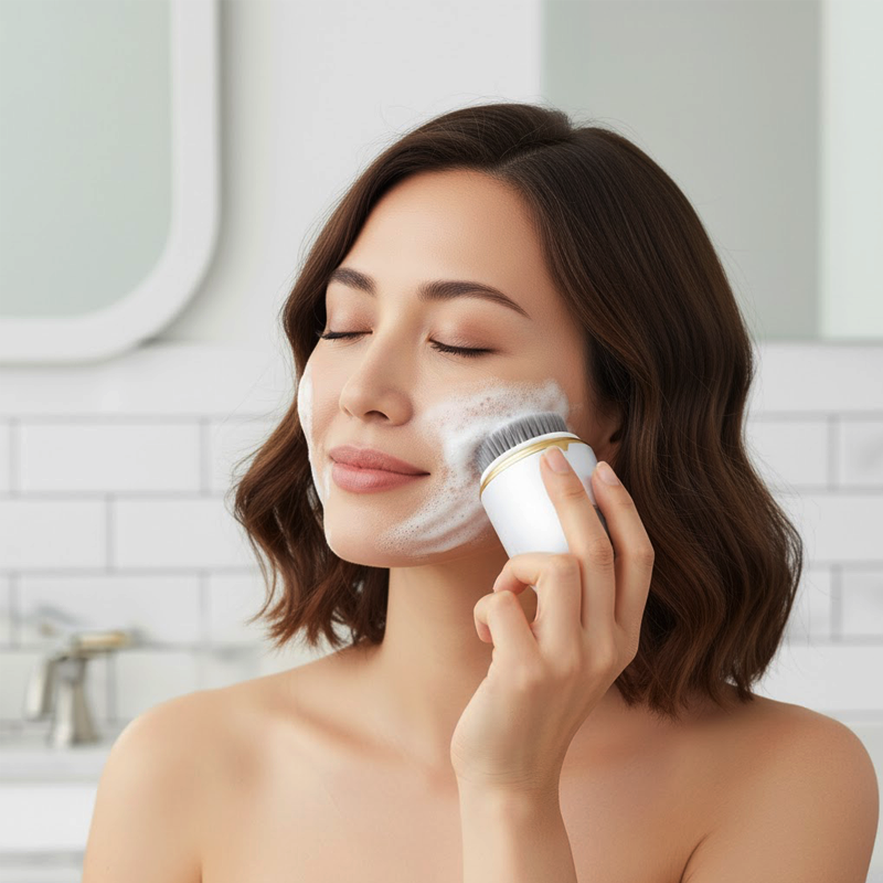 Roterande borststrån sveper enkelt bort orenheter från varje yta. Huden känns renare, mer balanserad och mindre benägen att få finnar.