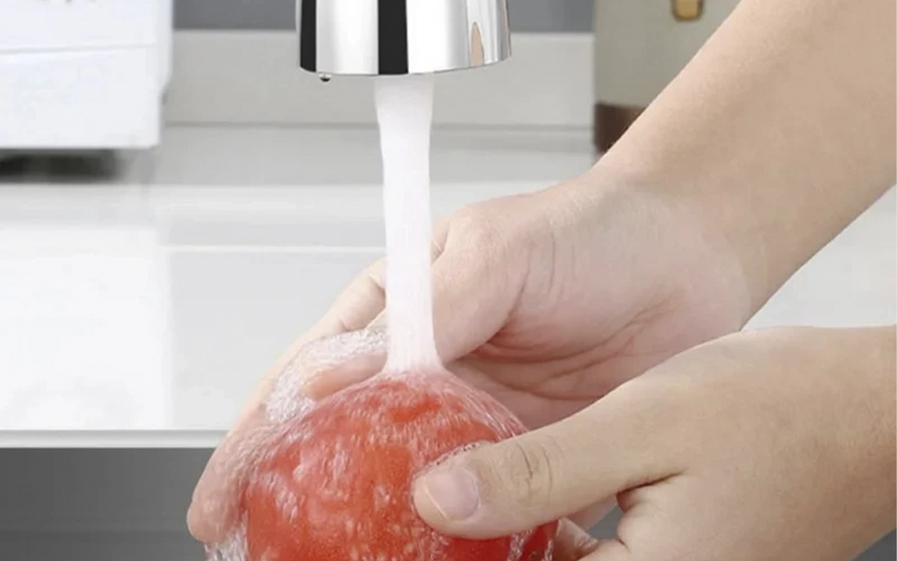 Perfekt för att skölja ris, tvätta sallad och till och med fylla höga kannor. Luftaren ger en riktigt mjuk stråle som inte stänker överallt.