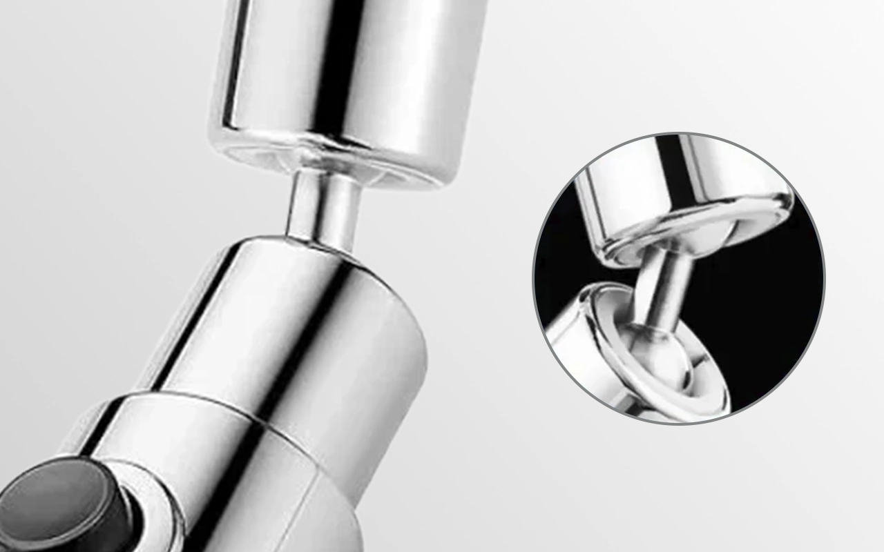 Dubbla roterande leder låter dig rikta vattnet var som helst snabbt. Ingen plats missas, inte ens runt knepiga hörn eller djupa kastruller.