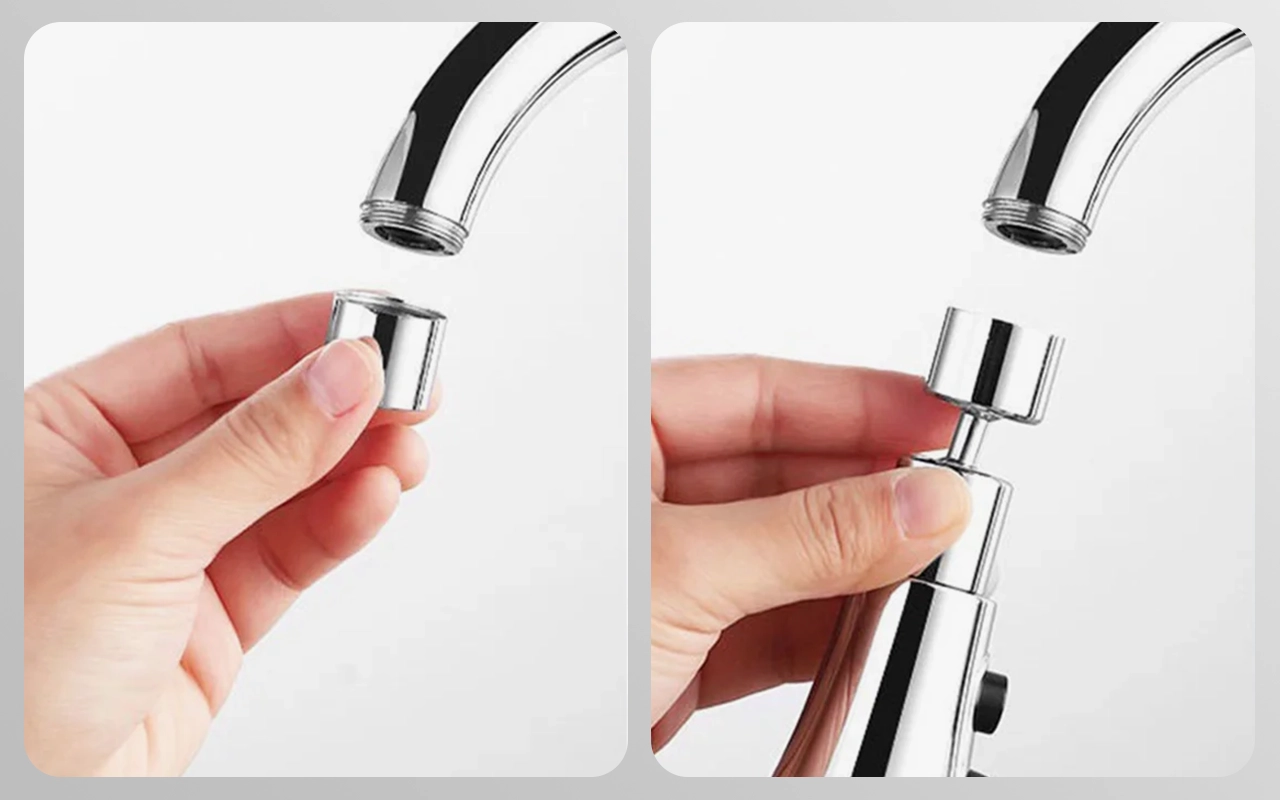 Förlängningen passar perfekt på vår gamla kran. De olika sprayinställningarna gör att jag kan skölja hårda pannor eller snabbt växla till mjuka frukter.