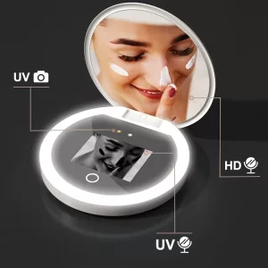 Ortorex UV-spegel är kompakt, lätt och dubblerar detaljer. Njut av felfri smink- och solskyddskontroll var du än är.