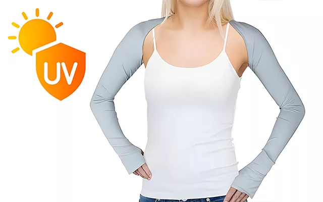 Våra UV-kläder skyddar inte bara armarna utan även ryggområdet från direkt ljus. Sätt på dem och gå ut utan bekymmer.