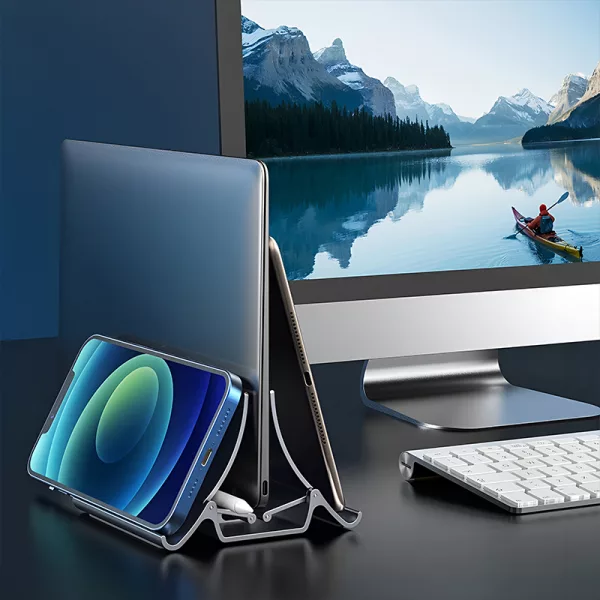 Detta laptopställ gjorde att mitt skrivbord känns enormt! Jagskar hur min laptop och surfplatta står upprätt och är skyddade från kaffespill. Värt varenda krona.