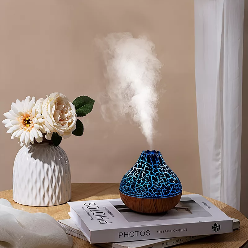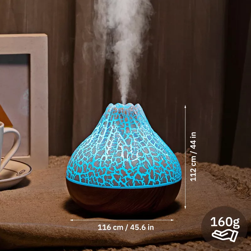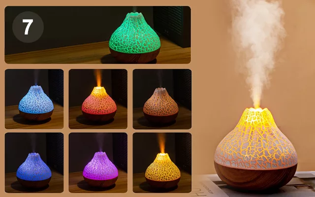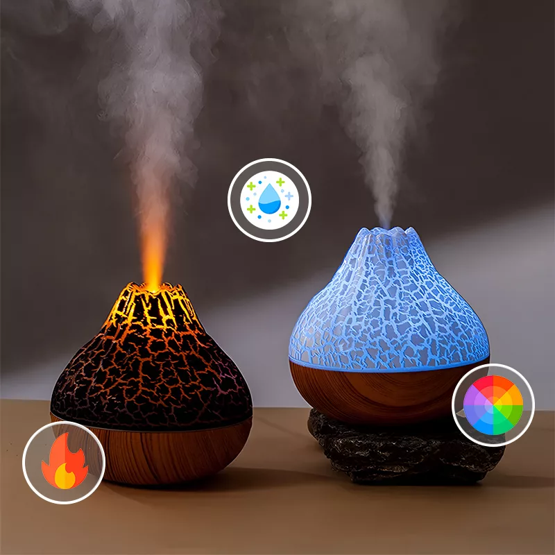 Mitt sovrum känns mycket mysigare med den här vulkanluftfuktaren. Den mjuka dimman hjälpte mot min torra näsa och de färgade lamporna är roliga på natten.