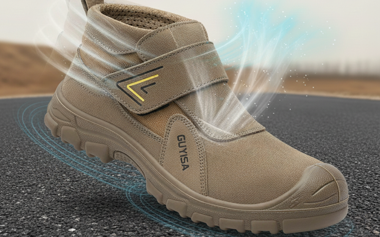 Andningsbart foder håller fötterna torra under långa arbetsdagar. Flexibla sulor dämpar varje rörelse och minskar trötthet snabbt.
