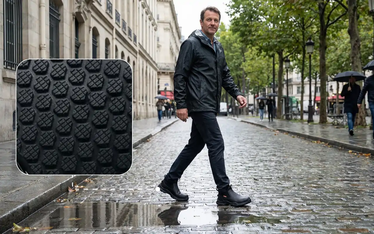 Våta golv eller spill orsakar aldrig plötsliga fall inomhus. Pålitliga sulor hjälper till att förhindra olyckor på jobbet eller hemma.