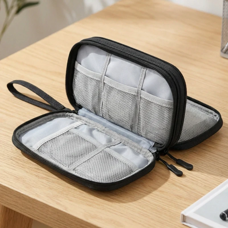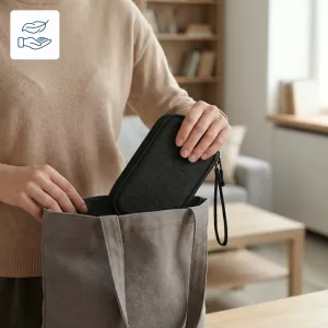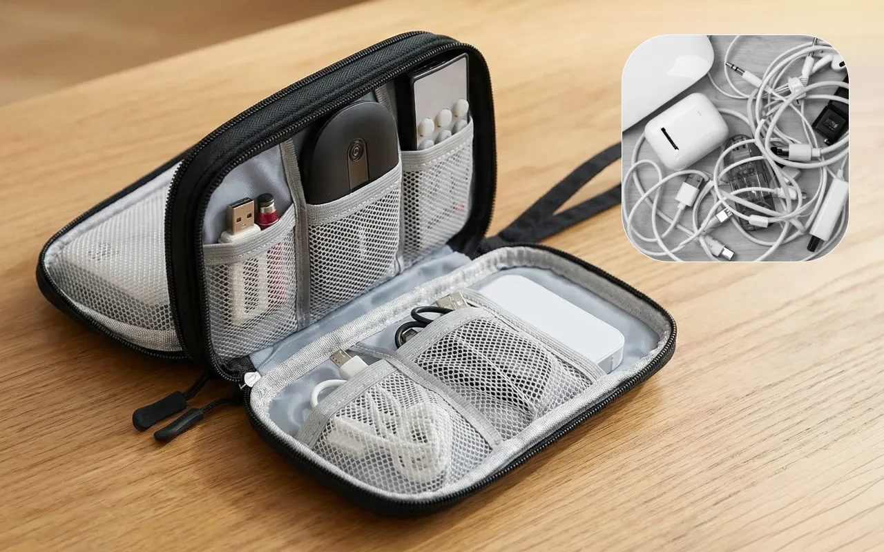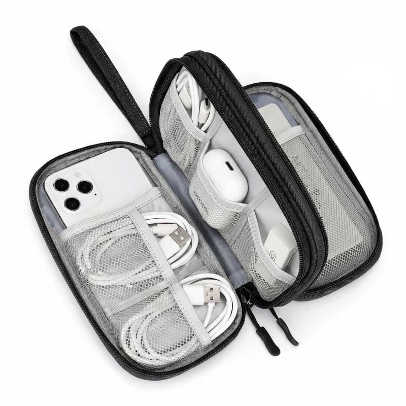 Jag slängde ner fodralet i min tygkasse en regnig dag och min mobilladdare höll sig torr. Aldrig mer leta efter hörlurar eller USB-stickor i botten av väskan!