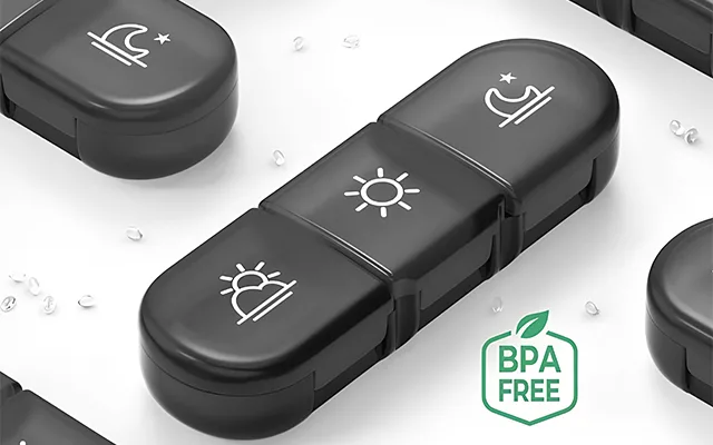 Livsmedelsklassad BPA-fri plast håller allt fräscht och rent. Dina tabletter är skyddade från damm och fukt varje dag.