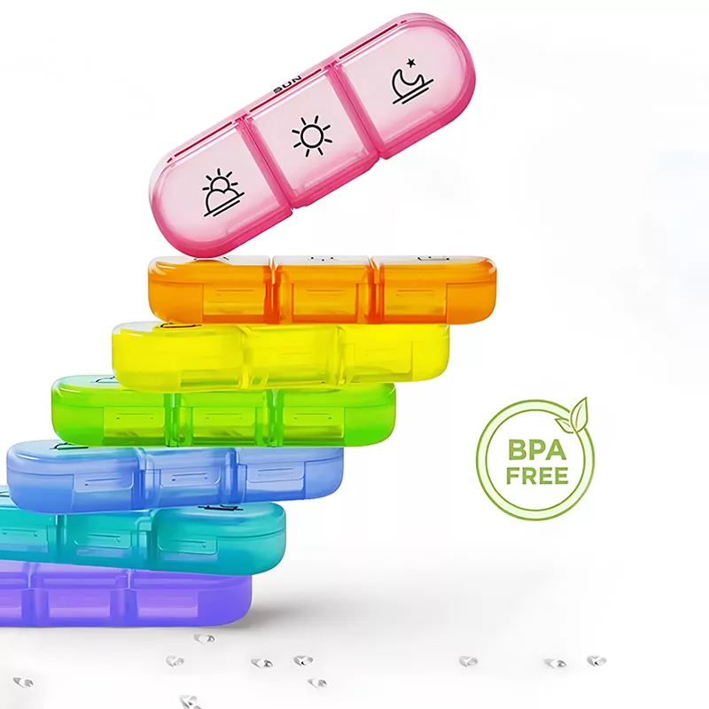 Superpraktisk för mina dagliga vitaminer. Varje fack öppnas lätt men håller sig stängt i väskan – älskar de glada färgerna.